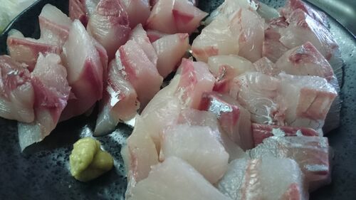 ベイトタックルで釣った青物を食べ比べてみた。カンパチとブリの子の刺身。